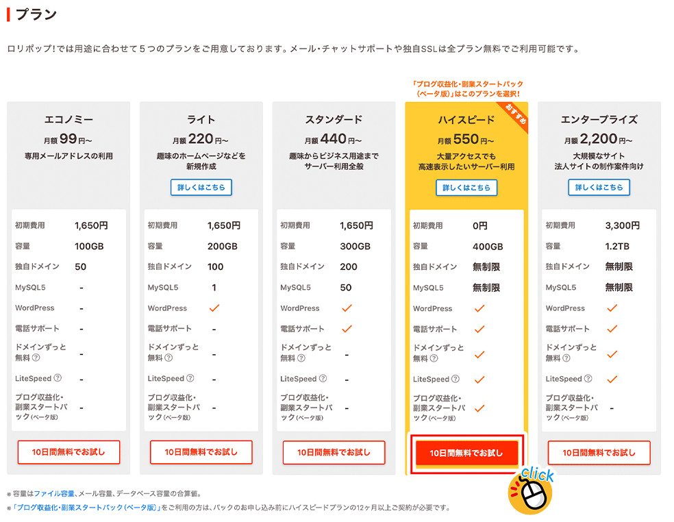 1:ロリポップのページにアクセス