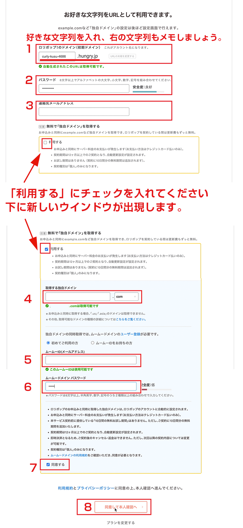 6:パスワードは任意のもので結構です。(メモしてください・ムームードメインのパスワード)